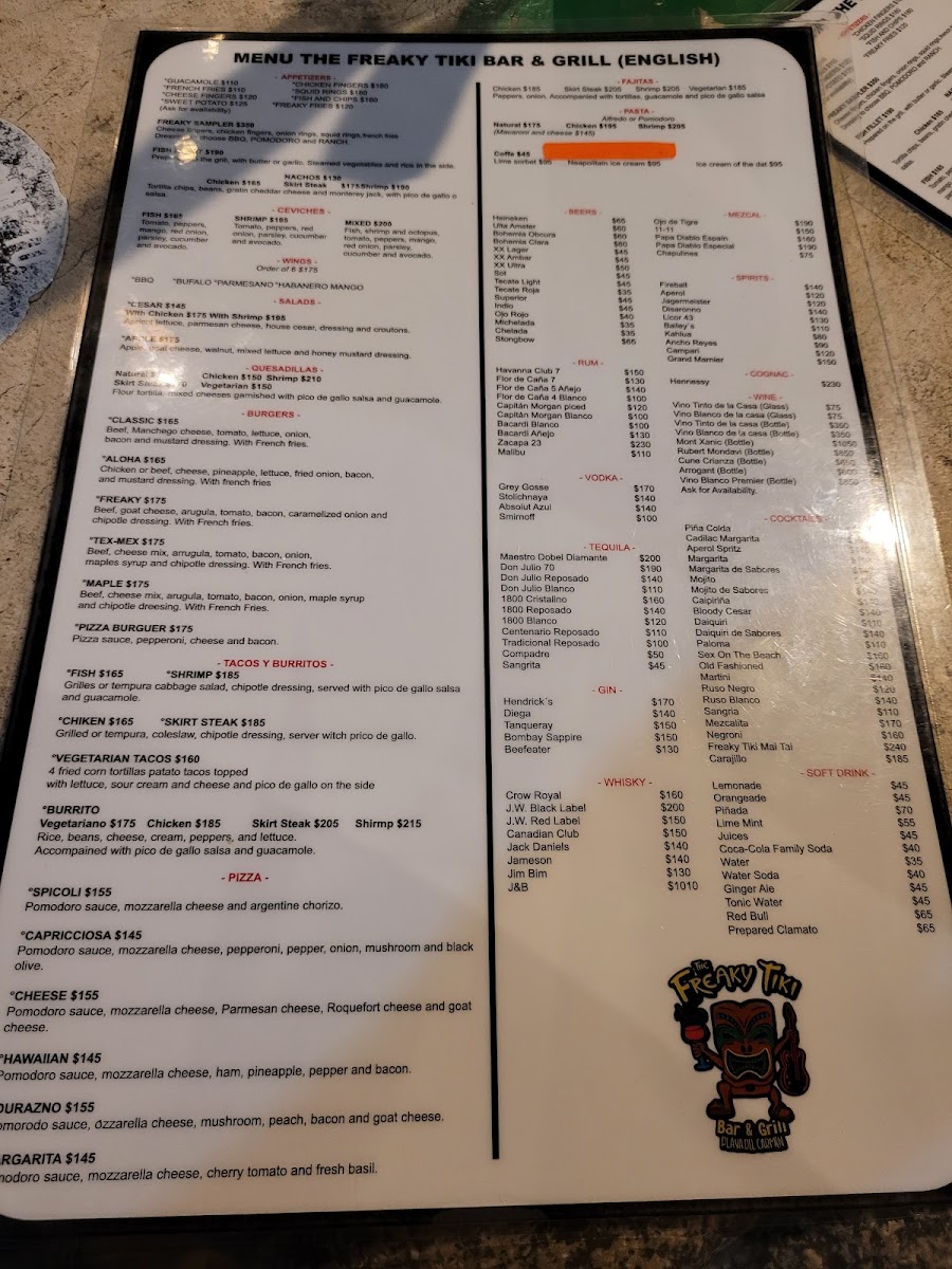 The atmosphere is laid-back, featuring both indoor and outdoor seating, perfect for cooling off with AC or enjoying a lively evening with live music from Thursday to Sunday. With daily specials that include a burger, fries, and beer for just 150 pesos, The Freaky Tiki is not just about the excellent food—it's a friendly spot where locals and visitors alike feel right at home. Don't miss this must-try hotspot!